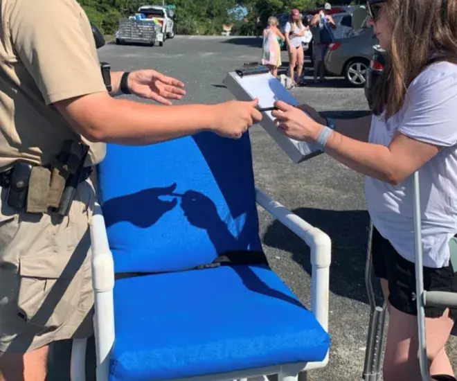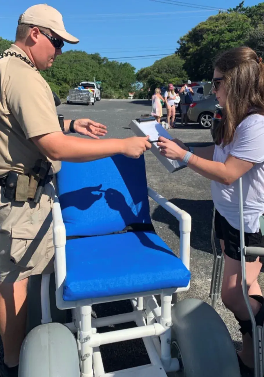 The City of Myrtle Beach has a number of beach-going wheelchairs available for use at no cost on a first-come, first-served basis. The chairs are equipped with balloon tires and safety belts for people with disabilities. For the City of Myrtle Beach, request and schedule a beach wheelchair, if one is available, by contacting city staff at 843-918-1488 or emailing [email protected]. Wheelchairs will be delivered to (and picked up from) your location by community service officers between 9 a.m. and 5 p.m., weather permitting. Use of the chairs is free, but photo identification is required. Wheelchairs are not available after 5 p.m. Because these chairs are offered on a first-come, first-serve basis, it’s recommended to make your request in advance of your stay in Myrtle Beach.