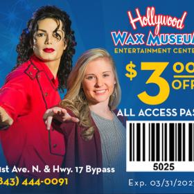 Get $3 Off All Access Pass at the Hollywood Wax Museum Entertainment Center in Myrtle Beach, SC.