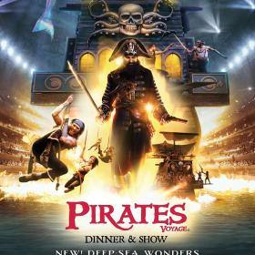 Pirates Voyage invites you to join the most famous pirate, Blackbeard, and his quartermaster Calico Jack as they lead the Crimson and Sapphire crews in a battle high above full-sized pirate ships in a 15-foot deep indoor hideaway lagoon! As the action begins, the delicious four-course pirate feast is served. Join us for an evening packed with action, competition, and audience participation.