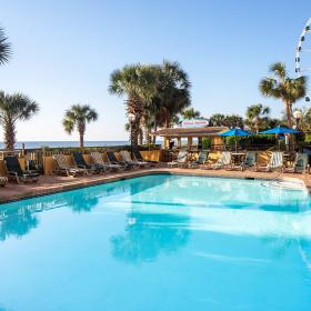 Nestled along the prestigious north section of the award-winning Myrtle Beach Boardwalk, Holiday Pavilion Resort offers guests an unparalleled oceanfront experience. Just steps from the iconic SkyWheel and Pier 14 Restaurant, this resort places you at the heart of Myrtle Beach's vibrant attractions. Guests can enjoy five indoor and outdoor pools, the Oceans Coffee Café for their morning pick-me-up, and Tropical Paradise Beach Bar—the BEST beach bar on the Boardwalk—with unbeatable ocean views. Whether you're seeking relaxation or adventure, Holiday Pavilion Resort provides exceptional value in a prime location.