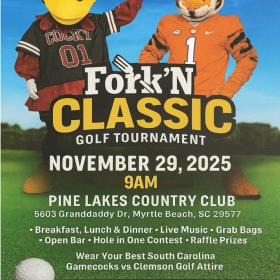 The 2nd Annual Fork'N Classic Golf Tournament is a charity golf tournament hosted at the Pine Lakes Country Club in Myrtle Beach on November 29, 2025. Presented by the Soul Star Shoes Foundation, the event combines golf with philanthropy to raise money for less fortunate children.Coming for the Event? Book Your Stay Now