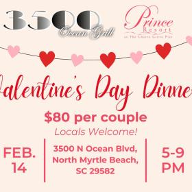 We’re excited to share our Valentine’s Dinner at 3500 Ocean Grill, located at Prince Resort.