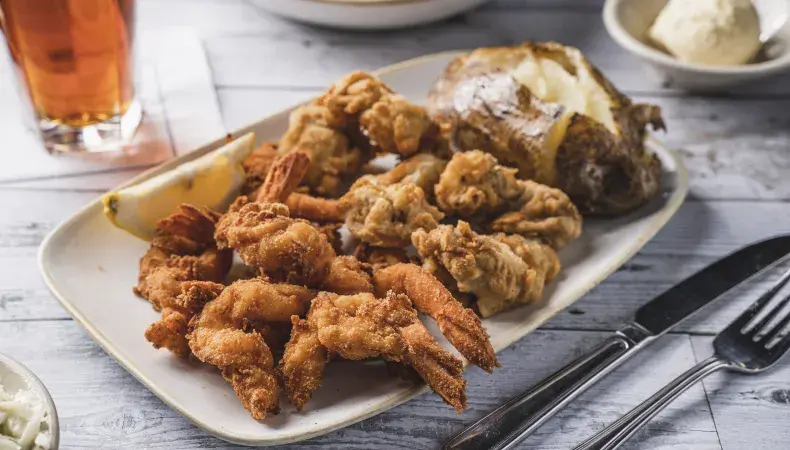 Drunken Jack's offers fresh local seafood right off the boat, great steaks, chicken, and world-famous hushpuppies with honey butter. Enjoy legendary family dining along with our Lowcountry charm and hospitality while dining waterfront, overlooking the beautiful MarshWalk and Marina.