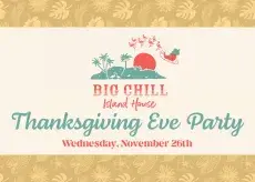Kick off the holiday season Island-style at our Thanksgiving Eve Party! Gather your friends and family for an evening of festive fun as we transform Big Chill Island House into a holiday escape filled with music, lights, and good vibes. Enjoy an extended Happy Hour from 6–8 PM throughout the